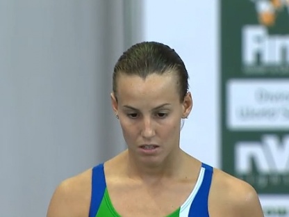 Gara opposta per la Cagnotto che proprio con il triplo e mezzo avanti carpiato ha rischiato di giocarsi la gara: dopo il quarto giro era in quarta posizione, ma con due ottimi tuffi, specialmente il doppio e mezzo rovesciato carpiato, si è piazzata seconda, proprio alle calcagna di He Zi, solo 4 punti più avanti di lei.