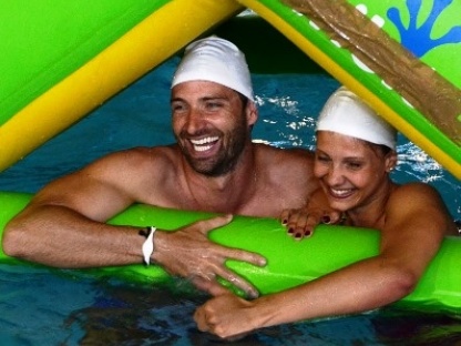 Tutti in acqua per una festa davvero speciale tra giochi e divertimento. “ Acquamica Nuoto Anch’Io Arena”, 1° progetto nazionale scolastico dedicato all’avvio all’acquaticità, sviluppato da Arena Italia, azienda leader nel settore dello sport water wear , in collaborazione con la Federazione Italiana Nuoto (FIN), ha fatto tappa a Verona con una giornata in piscina al “Centro Federale Aberto Castagnetti” e l’incontro con i campioni FIN Massimiliano Rosolino e Lisa Fissneider (in copertina e sotto con i bambini).