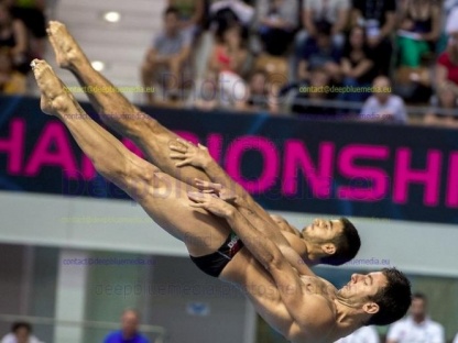 Serratissima la gara delle prime quattro coppie: Zakharov/Kuznetsov (RUS), Hausding/Feck (GER), Gorshkovozov/Kvasha (UKR) e Laugher/Mears (GBR), con la coppia tedesca pronta a tutto pur di conquistare la quarta medaglia d'oro, tutte ad opera di Patrick Hausding, ma comunque in difficolta' rispetto ai russi e agli ucraini.