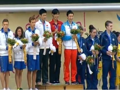 Una medaglia, quella odierna, che pareva difficile da conquistare ma non impossibile. In un certo modo era un piazzamento da dover confermare, visto che ai Mondiali 2012, gli azzurrini di allora erano Mutti, Campigli e Gabbrielleschi. Ed arrivarono terzi. I ragazzi di oggi hanno fatto meglio, scalando una posizione dal già brillante risultato degli allora protagonisti Juniores 14-16 anni. Il trio italiano aveva forti credenziali in partenza. Contando sulla garanzia e la condizione della fresca vicecampionessa mondiale Carlotta De Mattia e con il duo maschile sceso in vasca ieri (con risultati nelle retrovie), Alessandro Bellinelli e Daniel Silvestri, vi erano buoni margini di ottimismo. Avere in squadra l’argento iridato femminile poteva e doveva essere un deciso punto di forza per il Team Event italiano, gara in sé, dove la compattezza e la forza dell’elemento “rosa” risulta spesso essere il valore aggiunto per la squadra. Così è stato. E lo si è intuito da subito, perché partono subito molto bene gli azzurrini, che al primo giro hanno il secondo miglior crono (appaiati a Francia e Ungheria) dopo i velocissimi cinesi (25 secondi di ritardo dagli asiatici).