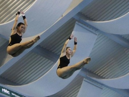 Sempre dal trampolino, ma per la gara femminile, ancora una volta le atlete cinesi He Zi e Wang Han hanno fatto mangiare la polvere alle loro avversarie; speravano invece in qualcosa di più le canadesi Pamela Ware e Jennifer Abel, che hanno eseguito il doppio e mezzo avanti con due avvitamenti: tuffo ad altissimo coefficiente di difficoltà generalmente eseguito solo da uomini. Purtroppo non è andato a buon fine, con la Ware abbondante ed un po' avvitata. Per questo si sono piazzate terze, superate dalle colleghe australiane Esther Qin e Samantha Mills.
