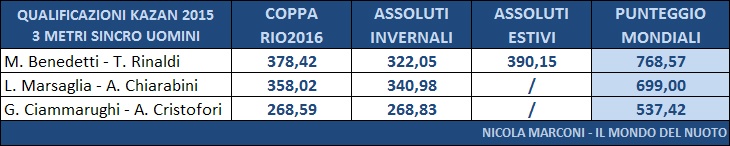 Tommaso Rinaldi e Michele Benedetti avrebbero vinto le selezioni, ma il CT Cagnotto ha deciso di convocare la coppia Chiarabini/Tocci per via del loro alto potenziale e della loro giovane etá.