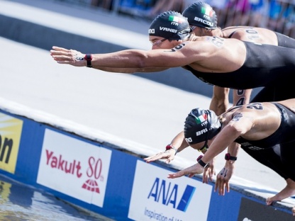 Tutto facile per i tedeschi campioni in carica. Christian Reichert, Rob Muffels e Isabelle Harle vincono in 55’14’’4 dopo aver preso il ritmo e gli automatismi giusti sin dalle prime fasi. L’Italia nuovamente si conferma sfortunata così come avvenuto nelle precedenti due edizioni iridate. Anzi, quarta a Shanghai 2011 e quinta due anni dopo a Barcellona. La maledizione rimane soprattutto per Rachele Bruni, sempre presente nelle ultime edizioni e già medaglia di legno – con beffa sempre dalla brasiliana Cunha – nella gara individuale sui 10 km.