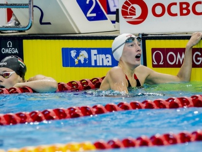 Minna Atherton (nella foto sopra) prosegue la sua marcia vincente nel dorso e si prende la scena e la vittoria con un grandissimo crono: 2’09’’11. La 15enne australiana vince – davanti alla cinese Liu Yaxin e alla canadese Taylor Ruck - anche i 200 metri con il nuovo record dei Campionati e coglie così la sua doppietta d’oro a Singapore. Così, dopo il primato mondiale nei 100 metri prosegue la sua prepotente marcia verso il titolo di reginetta dei Mondiali. Una candidatura fortissima, la sua, come quella della Ruck, l’altra grande protagonista di giornata. In precedenza erano uscite di scena nelle batterie per accedere alla finale le due azzurrine iscritte, entrambi classe 2000. 13esima si è piazzata Martina Rossi che ha nuotato in 2'14"58, seguita dalla portacolori delle Fiamme Gialle Giulia Ramatelli (2'14"82). Per aspirare a un posto nella finalissima avrebbero dovuto nuotare entrambe sotto la barriera dei 2’13’’, tempo nelle potenzialità delle due italiane.
