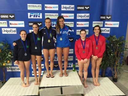 Dietro di loro, a contendersi la prima ed unica medaglia abbordabile – anche per l’assenza di Maria Marconi – Laura Anna Granelli e Laura Bilotta; entrambe hanno commesso errori e la sfida tra le due l’ha vinta la Bilotta, anche perché la Granelli é incappata in un “tuffo nullo” – doppio e mezzo rovesciato – che le ha tolto ogni speranza.