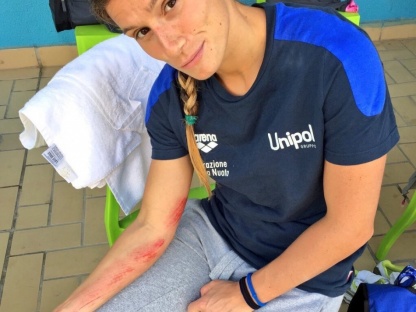 È successo proprio durante il presalto: la gamba non ha retto e l'azzurra si è letteralmente "inginocchiata" e per non cadere giù si è aggrappata al trampolino, procurandosi dei graffi abbastanza lunghi e profondi.