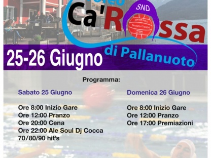 PallanuotoSi svolgerà nelle acque del lago di Caldonazzo la prima edizione del Trofeo "Cà Rossa " di pallanuoto 5 vs 5 riservato a squadre amatoriali e non.Le iscrizioni sono ancora aperte ed è possibile contattare l'oprganizzazione via mail o facebook.