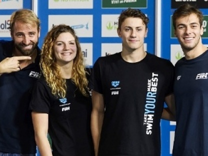 Nella foto i due vincitori fra Massimiliano Rosolino e Gregorio Paltrinieri