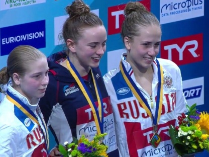 In finale si sono visti parecchi errori dovuti alla tensione, con le favorite della vigilia Maria Kurjo e Laura Marino un po’ rigide in avvio e staccate rispetto al gruppo. La Toulson e la giovane russa Anna Chuinyshena, esordiente assoluta (nata nel 2000) hanno ingaggiato un interessante testa a testa, lo spunto migliore di questa gara. A prevalere è stata la britannica, ma non di molto, segno che se la sono giocata punto a punto. A fare la differenza la sua maggiore costanza, con quattro tuffi sopra 65 punti, mentre la russa può vantare il tuffo migliore della gara, il doppio e mezzo indietro con avvitamento da 76.80 che le ha garantito l’argento.
