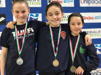 Podio “fotocopia” per la gara femminile, dove Giorgia De Sanctis (Fiamme Oro) ha, come ieri, guadagnato la medaglia d’oro con ben 55 punti di distacco rispetto a Giorgia Casalini (Bergamo Tuffi) nuovamente medaglia d’argento. E il terzo posto é andato alla “piccola” Diana Romano (MR Sport), unica “2008” nelle prime dieci atlete.