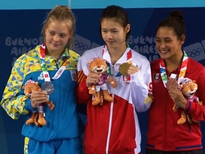 Le prime medaglie dei tuffi dei Giochi Olimpici Giovanili di Buenos Aires 2018 sono state assegnate! Questa sera era in programma la finale femminile dalla piattaforma, con le undici atlete della “eliminatoria” di questa mattina tutte qualificate e pronte a disputarsi uno dei due posti liberi sul podio: con la cinese Lin Shan che ha dimostrato già al mattino di essere imprendibile, per l’argento e il bronzo se la giocavano l’ucraina Sofia Lyskun, oro europeo nel team event a Glasgow; la tedesca Elena Wassen, campionessa europea juniores, e la messicana Gabriela Belem Agundes Garcia, tre medaglie ai Giochi del Centro America e già nel giro della nazionale maggiore da ben quattro anni.