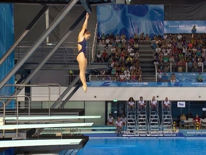 La finale dell’azzurrina, dove tutte le atlete hanno mantenuto il punteggio degli obbligatori realizzato in eliminatoria, è iniziata subito “in salita” con un errore nell’entrata del doppio e mezzo indietro carpiato, finito abbondante; purtroppo le sue dirette avversarie non si sono lasciate sfuggire l’occasione e così la nostra tuffatrice conclusa la prima tornata di tuffi si è ritrovata al 12° posto. Ma la Pellacani, soprannominata “Caterpillar”, non si è lasciata prendere dallo sconforto e ha comunque tentato la rimonta.