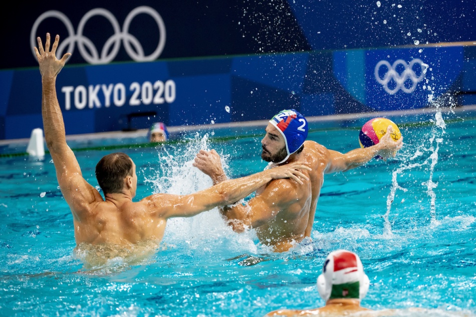 Non ha fortuna Stefano Luongo (sotto) e che colpisce la traversa a portiere battuto. L'Ungheria difende bene e ci impedisce di andare al tiro con precisione. Anche l'Italia serra i ranghi, ma al sesto uomo in meno concede gol: ancora Varga per il 4-2 a 6'30" del secondo tempo. Nicolò Figari (sopra) esce per limite di falli a 28" dalla sirena del cambio vasca. Time out Italia a 2'40" del terzo periodo: Campagna detta lo schema, la conclusione di Presciutti non graffia. Vamos commette fallo da rigore su Aicardi venti secondi dopo e capitan Figlioli dai cinque metri dimezza lo svantaggio. Del Lungo fa gli straordinari: chiude con autorità la controfuga, è aiutato dal palo nella nona inferiorità, ma non può nulla sulla conclusione del difensore Angyal al decimo extra player avversario. Comincia il quarto tempo e Figlioli dà la carica col 5-4 dopo 32 secondi; nell'occasione successiva colpisce il palo. L'Ungheria ha una doppia superiorità, e poi un altro uomo in più dopo un contro fallo fischiato agli azzurri in attacco, ma sbatte contro la difesa italiana.