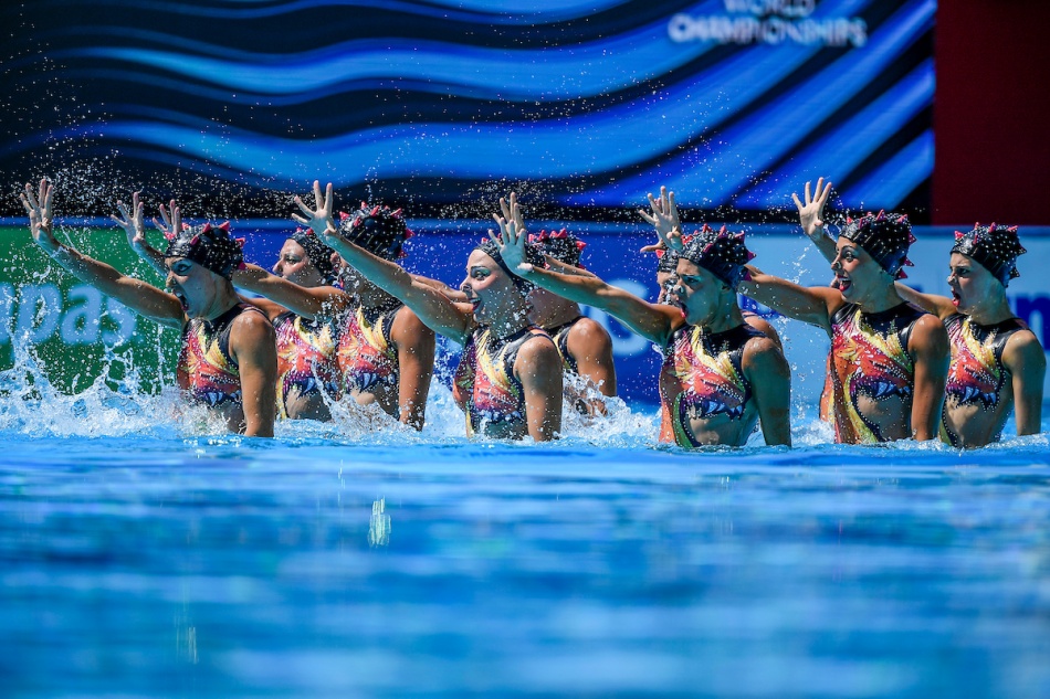 Si con conclude la giornata con l’Italia di nuovo sul podio. Le dieci ragazze del Dragone sono d’argento (sopra e sotto) nella finale degli highlight, dietro alle “dieci sorelle” ucraine, confermano la seconda posizione di Gwangju 2019 e conquistano la medaglia numero tredici della storia del sincro azzurro ai Mondiali. Per Gemma Galli e le compagne di squadra arrivano 92.2667 punti.