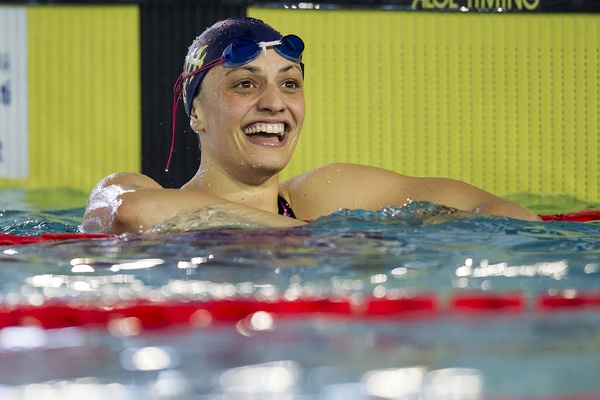 Sopra Ilaria Scarcella all'arrivo dei suoi 200 rana vincenti. Photo Andrea Masini/Deepbluemedia/Insidefoto